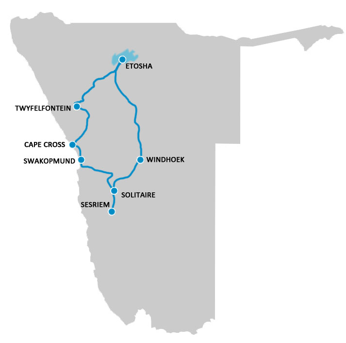 Il viaggio in Namibia vi porterà a esplorare paesaggi straordinari e variegati, a partire dal Parco Nazionale Etosha, dove si potranno ammirare da vicino i grandi animali africani durante emozionanti safari. Qui visiterete le antiche incisioni rupestri di Twyfelfontein, testimoni di culture millenarie, e si incontrerà il popolo Himba, custode di tradizioni ancora vive.